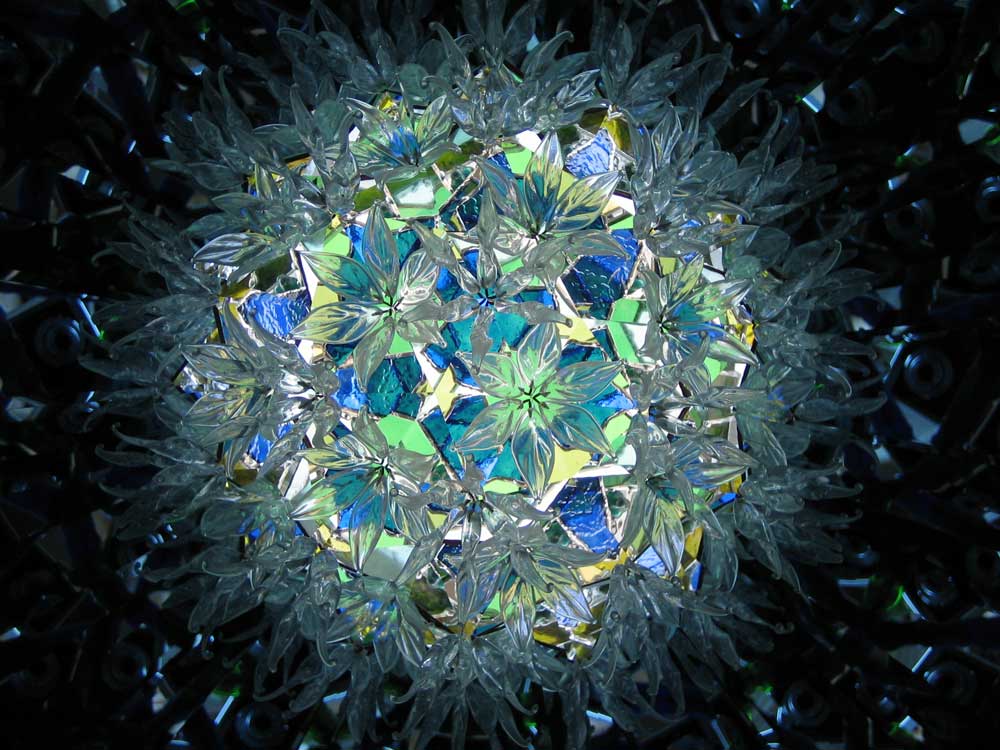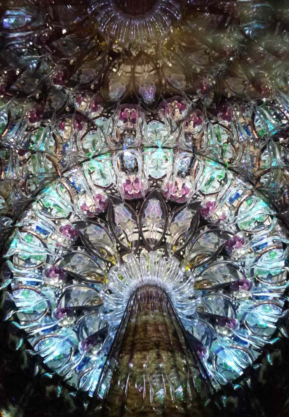 LEDなどのライトソースを組み込むことで、光が何層ものガラスを通過して幻想的な雰囲気を作ります。